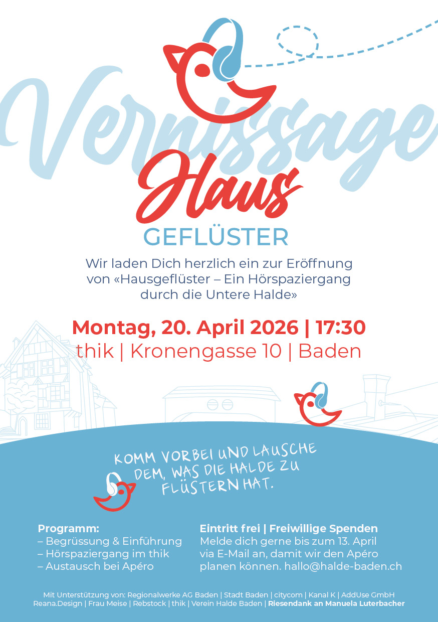 Du bist herzlich eingeladen. Melde dich über unsere Webseite an: hallo@halde-baden.ch