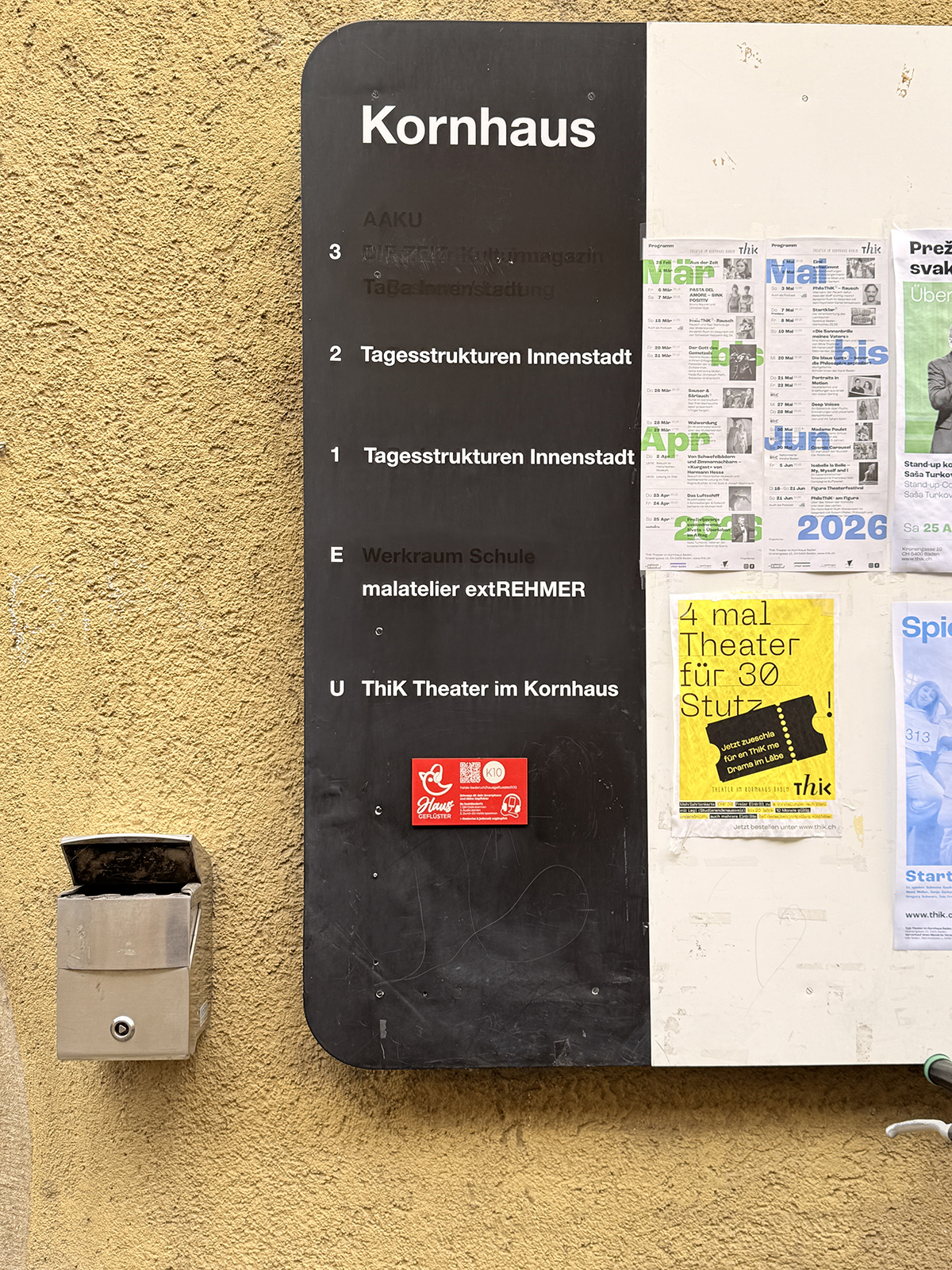 2026 wurde das «Hausgeflüster» lanciert und wird bis mindestens 2028 hörbar sein. Eine Erweiterung auf weitere Gassen in der Halde ist bereits angedacht.